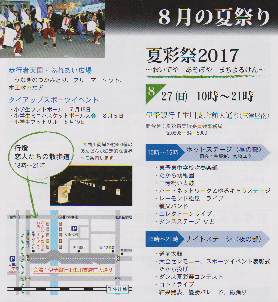 | 場所 | 森のくまさんコンサートステージ 久万高原町「久万公園」入り口向かい森林内 (雨天時:上浮穴高等学校・知今堂) |