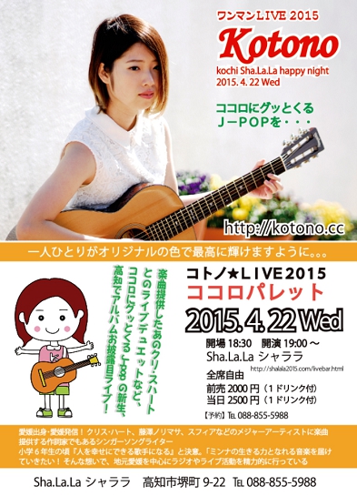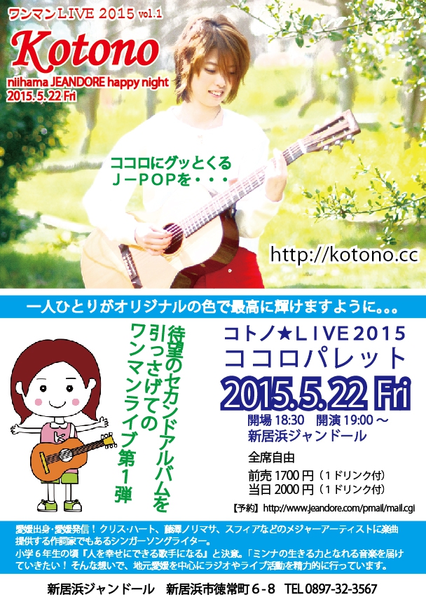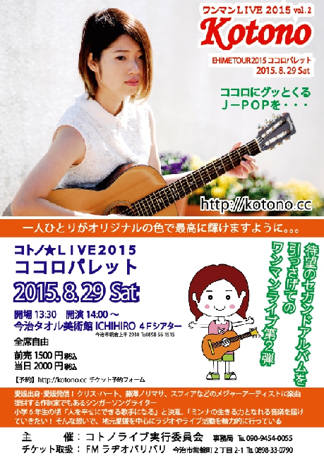 ワンマンツアー決定!!【コトノ★LIVE2015ココロパレット】