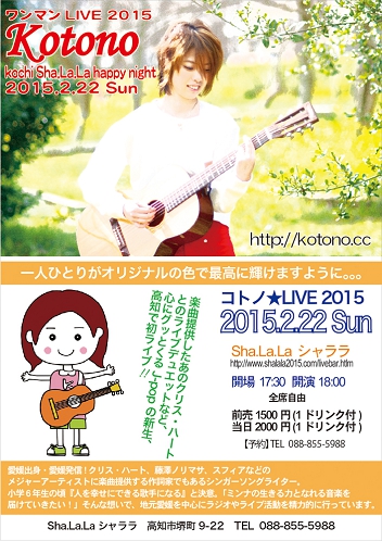 愛媛松山LIVE決定!!【2・18 コトノ Birthday LIVE】