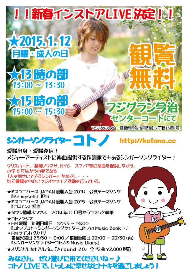 ◆2015/1/12(月・祝)【愛媛今治LIVE決定!!】