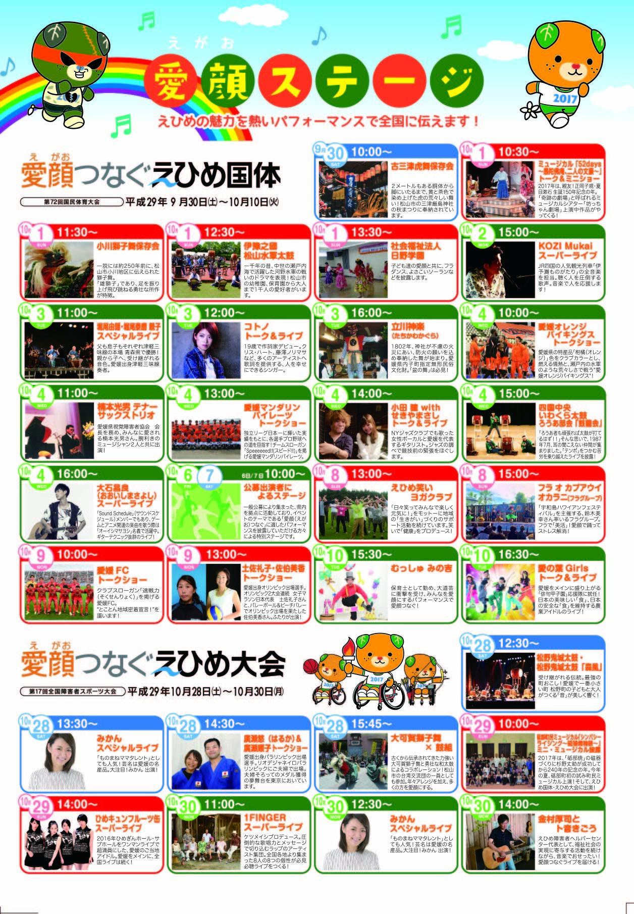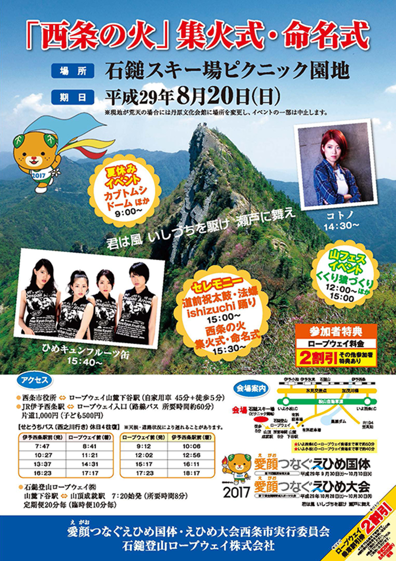 | 場所 | 森のくまさんコンサートステージ 久万高原町「久万公園」入り口向かい森林内 (雨天時:上浮穴高等学校・知今堂) |