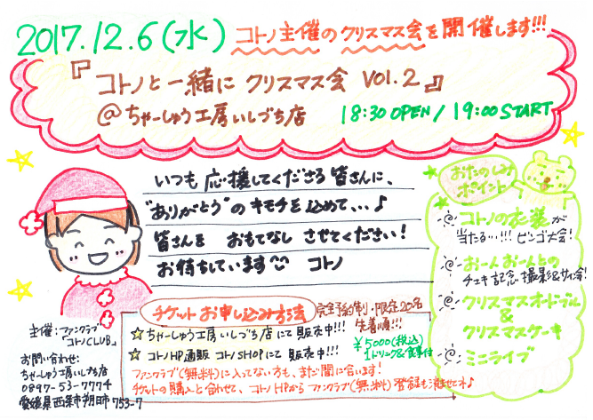 『コトノと一緒にクリスマス会 Vol.2』チケットは、SOLD OUTとなりました。 ありがとうございます。